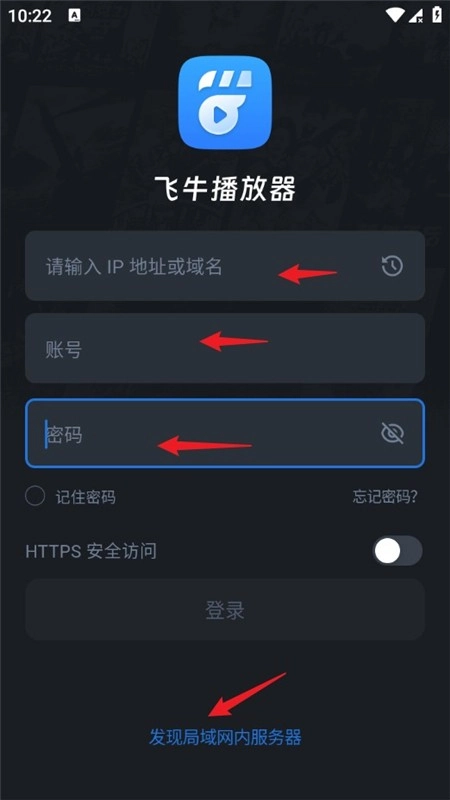 打开飞牛播放器,输入IP地址或者域名,再输入个人账号和密码,最后点击登录按钮就行。