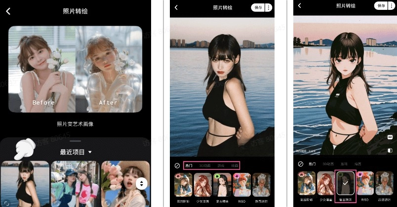 找到【AI创作】区域,就能挑选照片转绘、平面转3D、线稿上色这类有意思的创作功能啦~