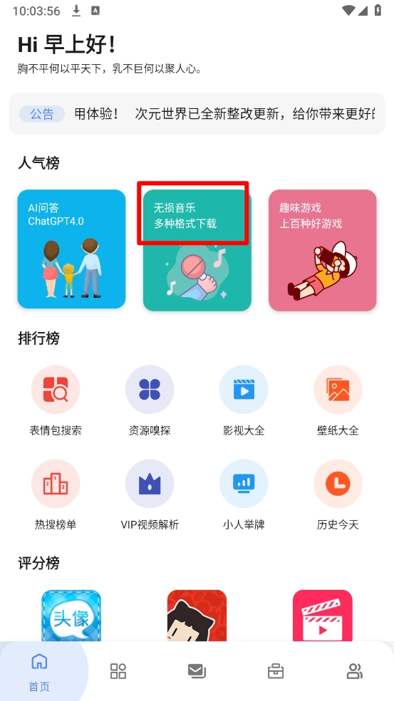 次元世界是一个轻量级的软件库资源分享平台,同时也是聚合全网资源的第三方应用工具。它提供丰富多样的应用类型与版本,所有资源都经过安全检测,不存在捆绑软件和干扰性广告。平台支持免费高速下载,内容持续更新,此外还有各类表情包、音乐、影视、壁纸等资源,无需额外操作,即点即用。