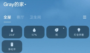 ·米家App顶部的「动态看板」,就会显示当前屋内的温度、湿度,以及净化器开关状态。