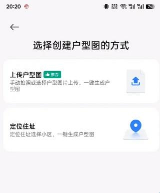 而在最新内测版上,首页顶部多了个3D家具入口,点进去后选择「上传户型图」或「定位住址」。