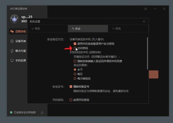 ②访问密码由被控端应用设置,可到被控端应用的【设置->安全->安全验证方式】中查看与设置