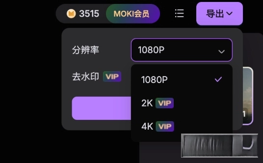 要是您对生成好的视频觉得满意,就能点击画面右上角的导出功能来导出视频,VIP用户还能够选择2K和4K的超高清画质,并且可以使用去水印功能。