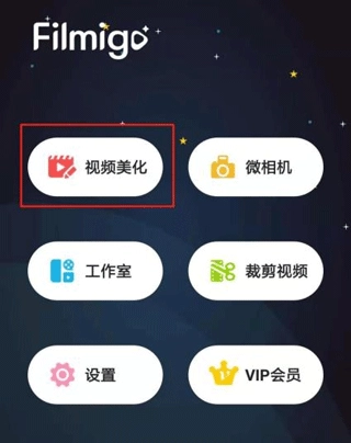 打开filmigo视频剪辑,点击【视频美化】功能,然后导入视频片段或者图片素材。