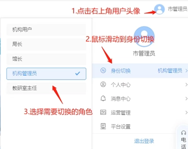 平台完成升级后,新增了角色切换功能。对于拥有多个角色的用户而言,在登录平台之后,能够通过平台右上角的相关入口来实现角色切换操作。