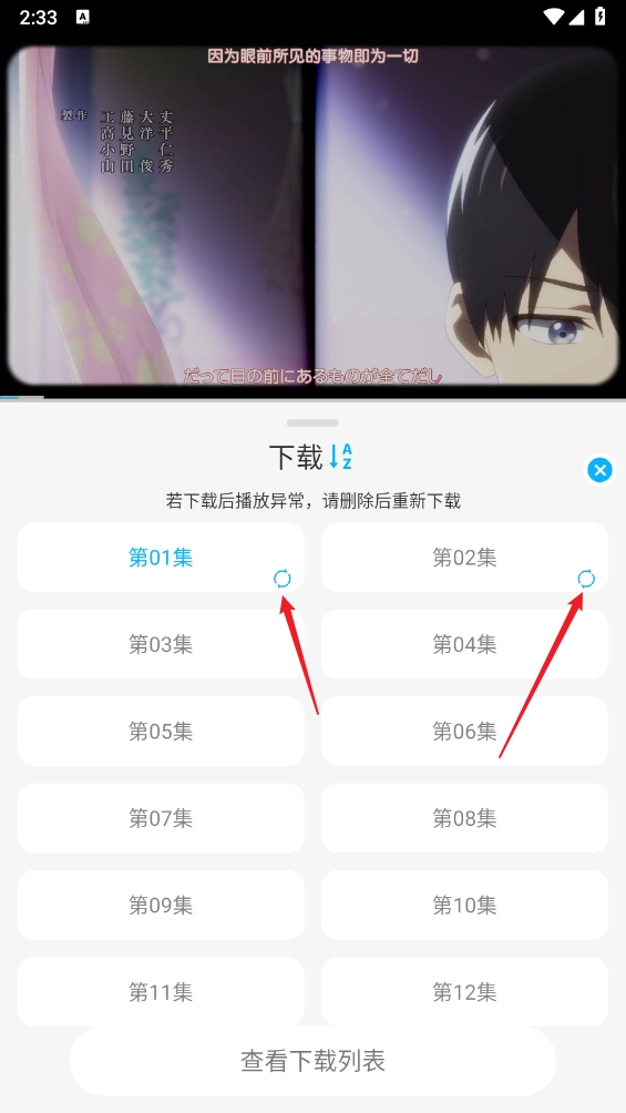 进入动漫详情页,点击播放屏幕呼出菜单。