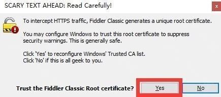 在弹出的对话框中选择“Yes”信任证书。