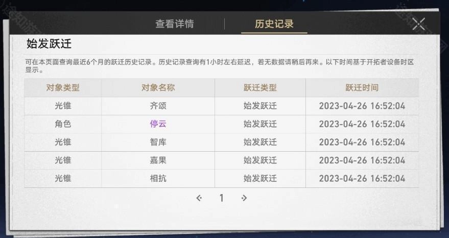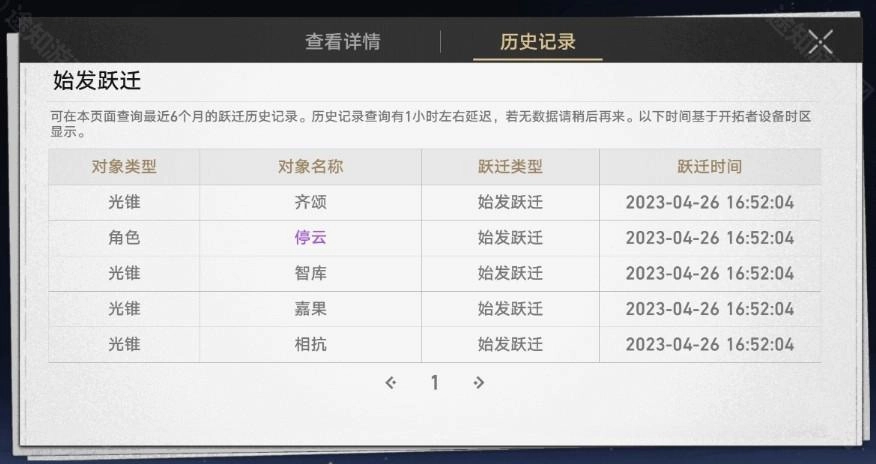 在游戏里打开菜单→选择跃迁→查看详情→进入历史记录页面,这里建议大家多翻几页。