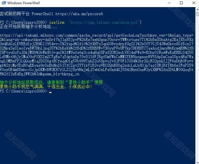最后把抽卡分析地址复制粘贴到“星铁小助手”的抽卡查询框里就可以了。(*该方法已失效)注意1:有些用户的游戏安装路径包含中文,可能会导致脚本报错,这种情况下可以手动下载软件https://img.lelaer.com/ ,下载完成后直接双击运行一次就行。注意2:国际服对应的powershell代码是iex(irm 'https://img.lelaer.com/sroc.ps1')