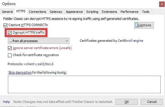 请点击HTTPS选项卡,并勾选“Decrypt HTTPS Traffic”这一选项。