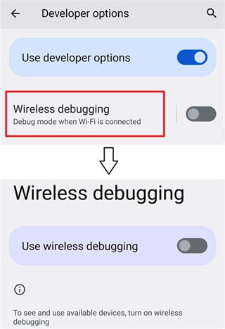 无线调试的启动方式适用于Android 11及更高版本,该方式无需连接电脑。不过受系统限制,设备每次重启后都得重新执行启动流程。