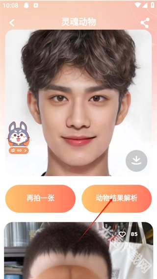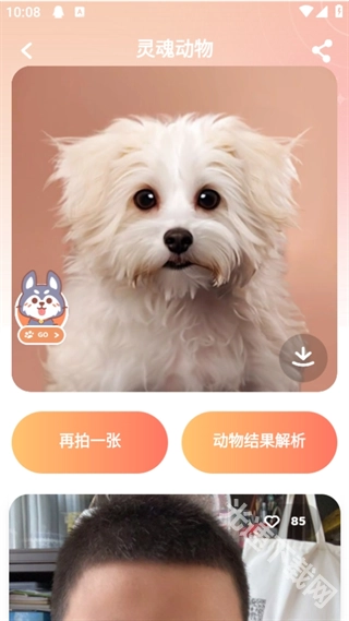 拍摄完成后,系统会自动识别并调整形象,让照片变成带有个人特色的小动物,要是想保存的话,点击右下角的按钮就行。