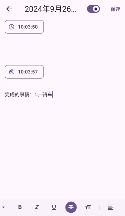可以选择日记时间,首页的日记同样按日期排列,因此这款软件也能当作提醒工具使用。每次打开它,就能让自己的待办事项更不容易被遗漏。