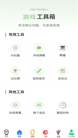 首页展示了丰富多样的工具类型,涵盖常用工具、其他工具以及游戏工具等,用户可免费选择使用。