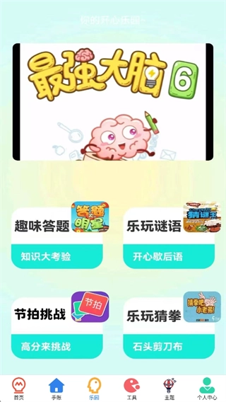 乐园界面上有各类趣味小游戏可直接体验,还能进行趣味答题,猜谜环节则能考验你的脑力。