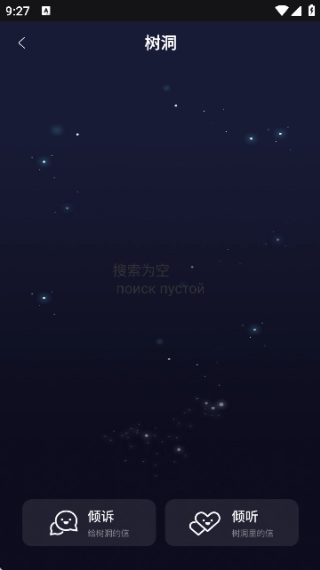 进入软件首页后,界面显示如图;接着点击进入树洞板块,即可开启聊天互动。