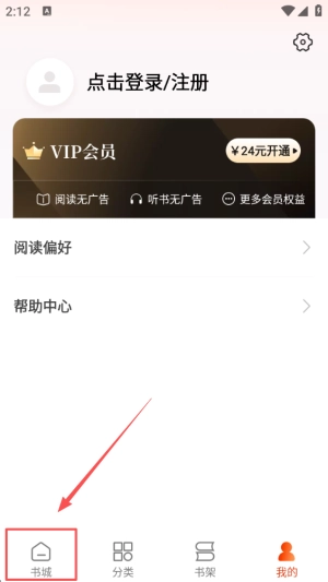 找到并点击“书城”选项,进入这个拥有多样小说的平台,去探索其中的精彩内容。