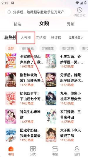 可以点击进入“人气榜”板块,查看当下的热门作品,就能便捷地发现那些备受大众喜爱的书籍。