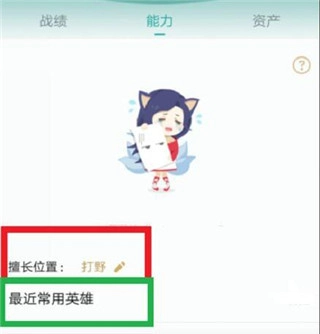 再移到上方写着“能力”的地方,这里能看到最近常用的英雄,还有擅长位置之类的资料。
