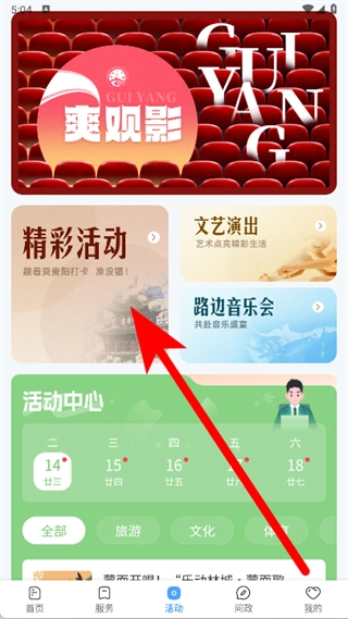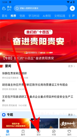 打开贵阳新闻,点击底部活动。