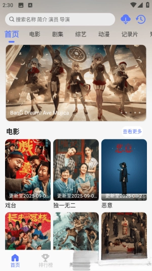 等加载完成后,我们就能在主页浏览到各类不同分类的影视资源了。