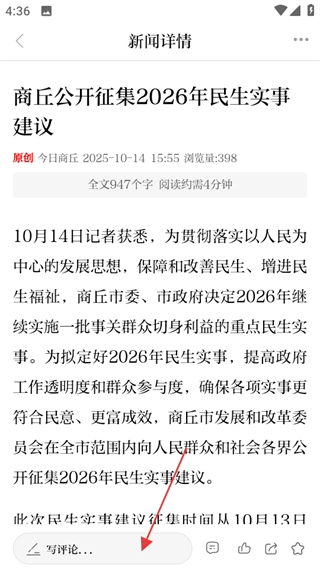 在商丘新闻页面,找到你感兴趣的新闻并点击,即可进入该新闻的详情页面。