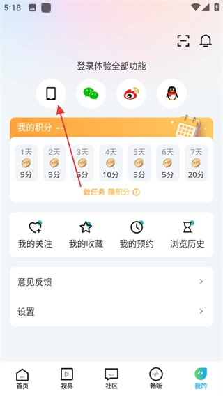 在个人页面,点击手机图标,即可进入四川观察的登录界面。
