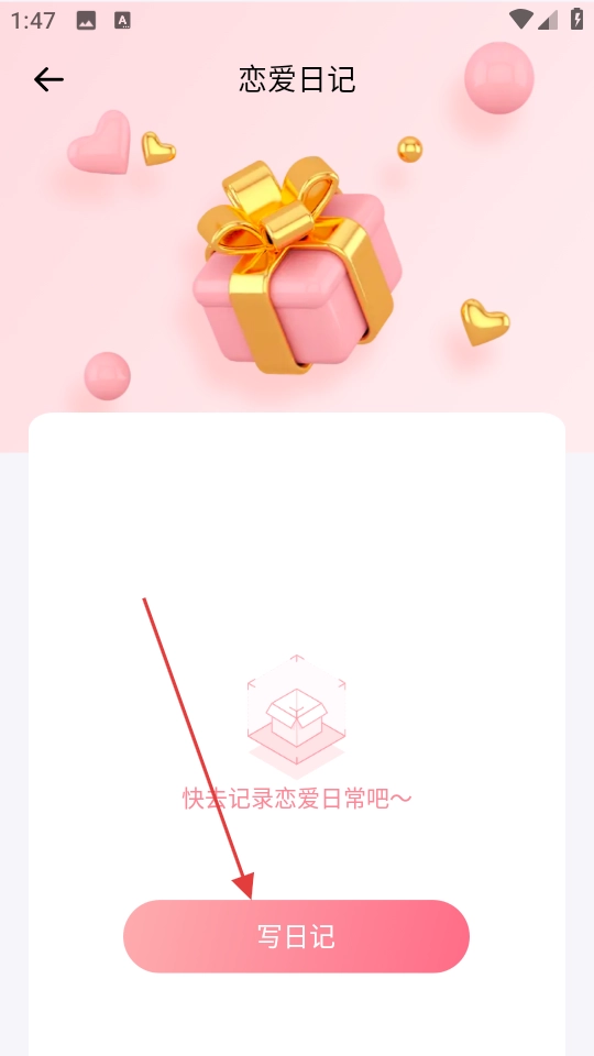 在恋爱主题页面,点击【恋爱日记】选项,即可进入恋爱日记的记录界面。