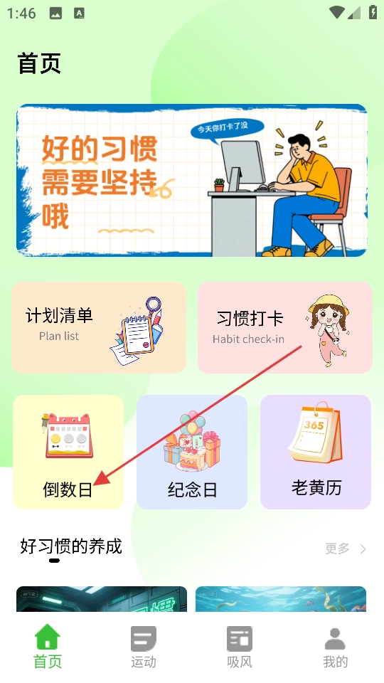 在软件的首页界面,选择【倒数日】这一选项,即可进入以恋爱为主题的功能页面。