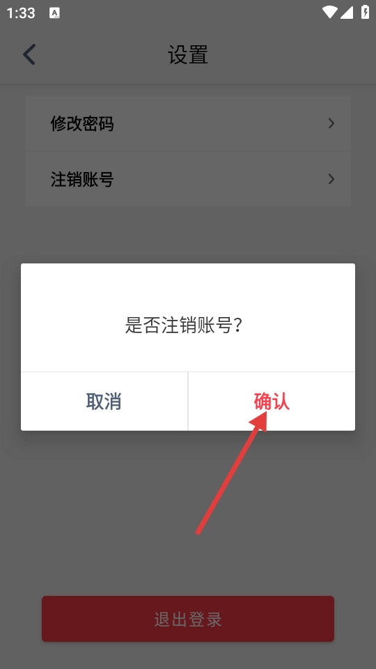 在注销确认弹窗里,点击“确认”按钮,即可完成账号注销的操作。