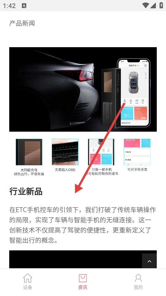 在新闻资讯页面,能够查看产品新闻以及行业新品等相关信息,例如行业新品所采用的创新技术介绍。