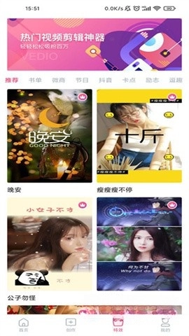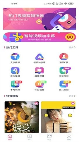 支持直接对视频进行编辑,用户能够自主添加特殊效果,同时还提供了海量热门模板可供挑选。
