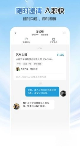 求职者和招聘者能够开展实时在线沟通,从而切实提升求职的效率。