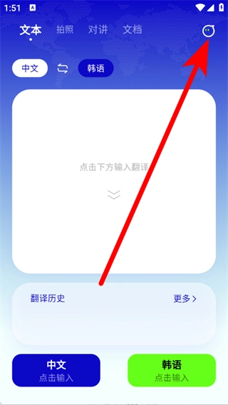 打开韩语翻译器,点击右上角的个人中心图标,进入我的页面。