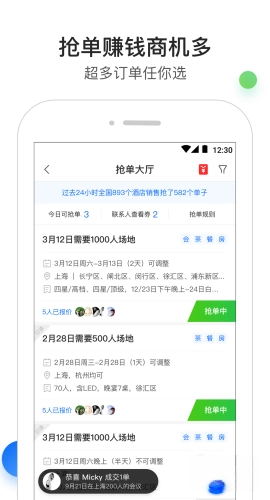 用户还能每日免费参与抢单活动,而且信誉越可靠的用户,每日可抢的订单数量也就越多。