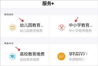 打开软件后,进入“服务+”界面,接着选择对应的缴费类型,像幼儿园、中小学、高校教育这类都可以选。
