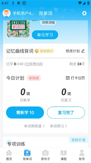当你感觉自己学的很OK,回到首页点击背单词