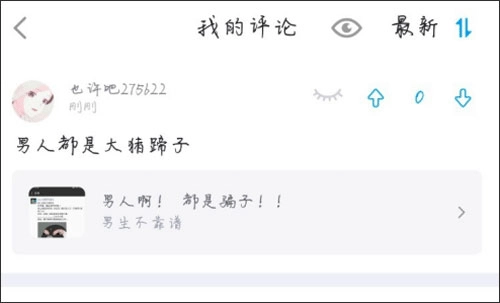 在我的评论区里,会展示出我评论过的帖子,接着点击顶部的小眼睛图标就行。