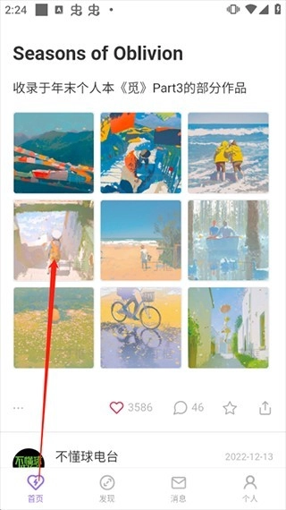 我们先找到需要保存的目标图片或视频,比如下图中《觅》的部分作品分享帖。