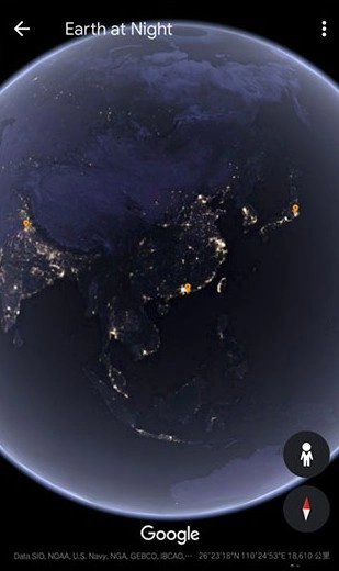 可以去查看地球上任意一处地方的夜景景色哦。