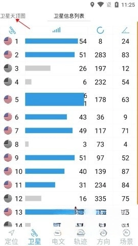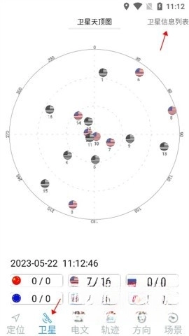 点击卫星选项查看实时卫星信息。