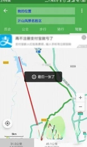 成功显示导航路线。
