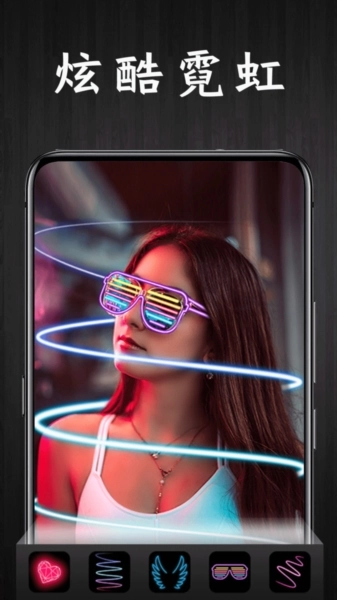 【霓虹特效】可为您的照片增添霓虹灯样式的效果,包含圆形、方形、三角形、螺旋等多种形状。