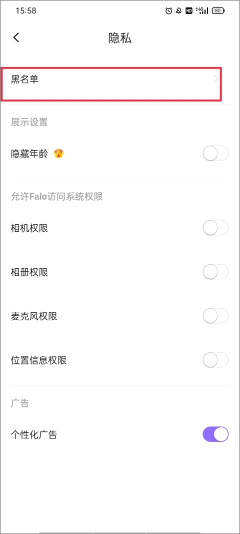 若要查看或管理黑名单,可在【我的】页面进入设置里的【隐私设置】进行查看。