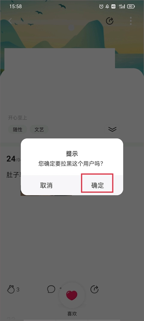 系统会提示你再次确认是否要拉黑这个用户,点击“确定”按钮后就能成功拉黑对方。