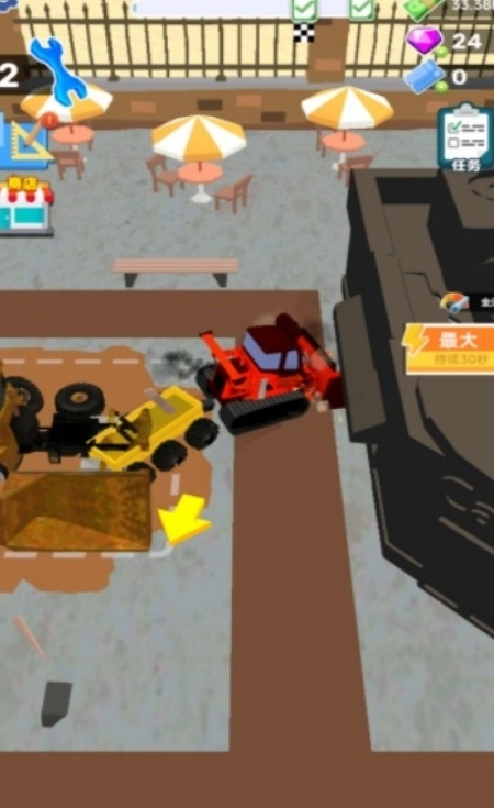 玩家完成拆迁任务后能得到金钱奖励,这些资金可用于公司设备的升级,比如提升推土机的动力性能,让它具备更强的推力、更锋利的铲斗等功能。