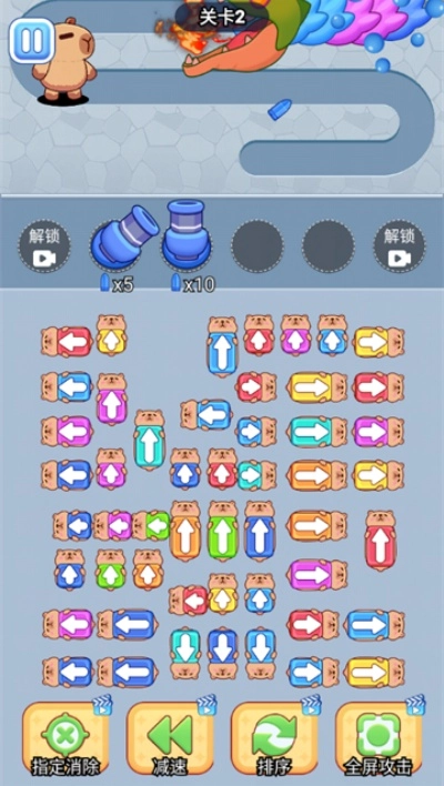 挪车我贼6安卓最新版不再是传统的停车场挪车玩法,而是一款融合了塔防与消除元素的趣味游戏。在这款免费游戏中,玩家需要点击带有箭头标识的卡皮巴拉车辆,这些驶出的汽车会转化为炮台;通过消除汽车来保护卡皮巴拉,点击相同类型的汽车即可完成消除操作,助力卡皮巴拉成功逃脱!游戏玩法十分简单,关卡数量丰富,还能借助道具辅助通关。