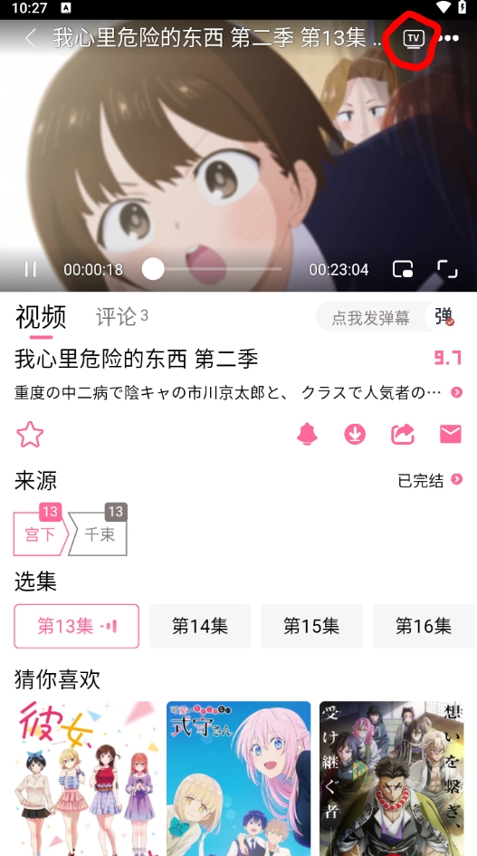 点击目标番剧即可直接进入播放页面观看;