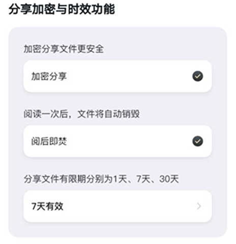 若想进一步保障隐私安全,可选用加密分享功能,同时设置分享的有效时长。