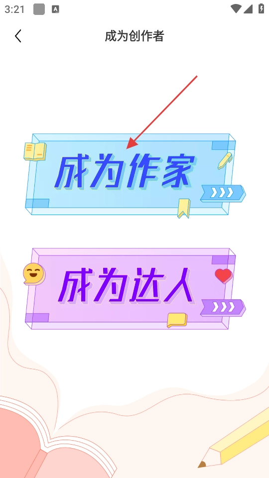 在创作者申请页面中,点击【作家入驻】选项,即可进入作家申请界面。